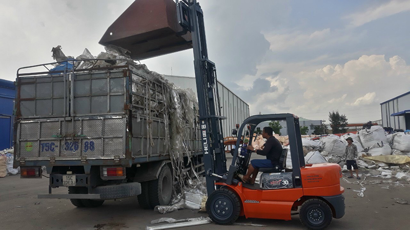 Xi măng: xe nâng 3 - 3,5 tấn, khung nâng cơ bản hoặc chui container từ 3-5 mét, lốp hơi hoặc đặc, bộ công tác dịch giá hoặc gật gù